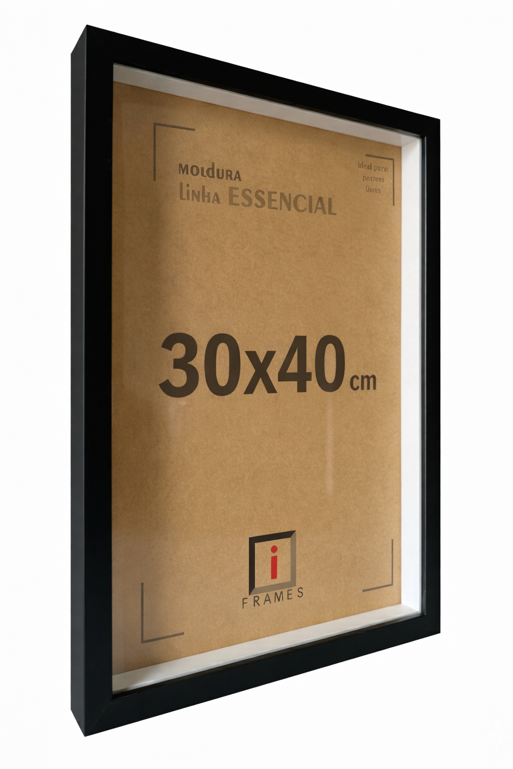 Moldura 30x40 cm Caixa Alta 3x1,5 cm C/ Espaçamento 1,8 cm C/ Vidro - PRETA