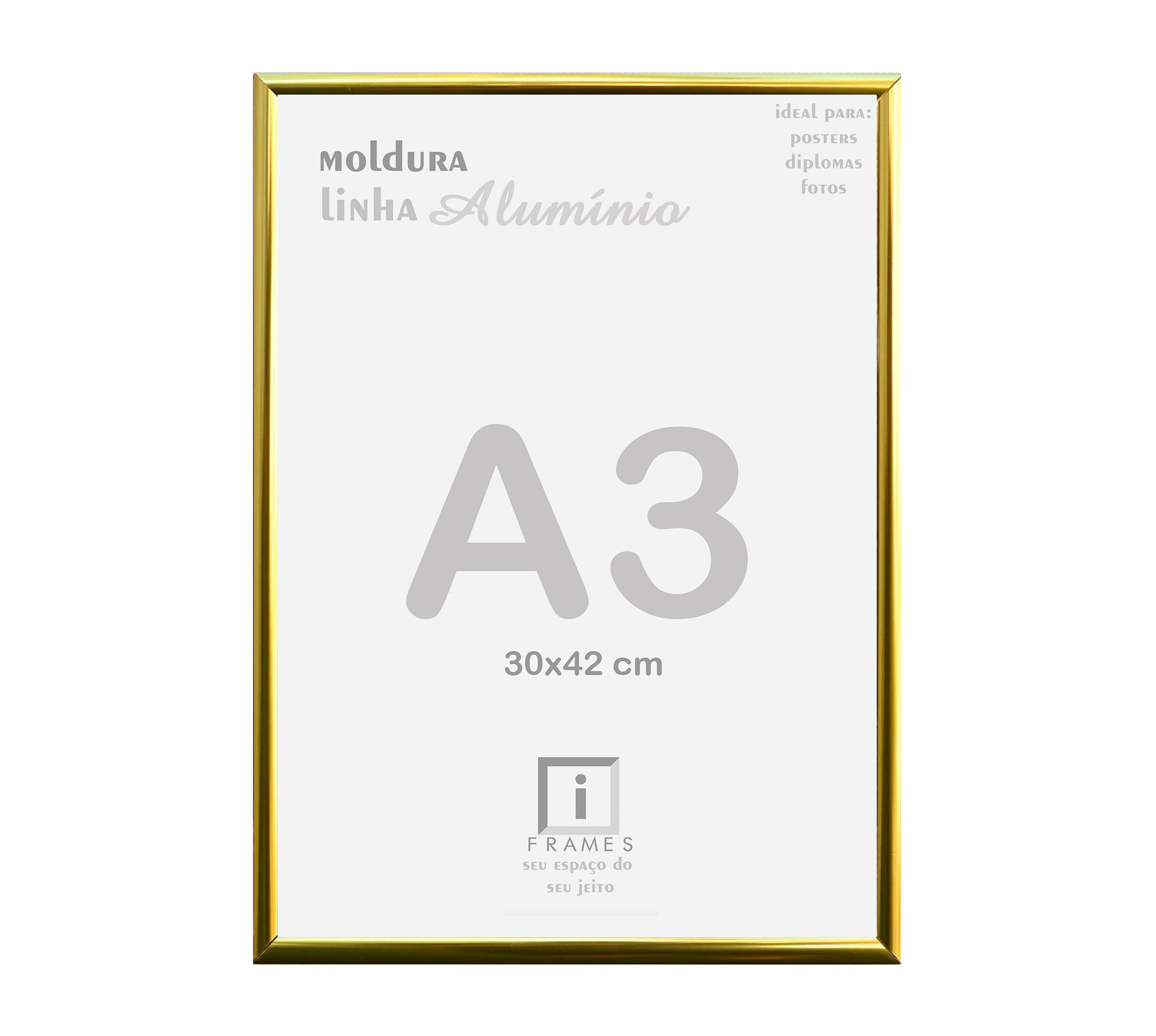Valorize suas conquistas e documentos importantes com a moldura dourada A3 em alumínio. Projetada com elegância e durabilidade, ela é ideal para emoldurar certificados, diplomas e alvarás no tamanho 30x42 cm.