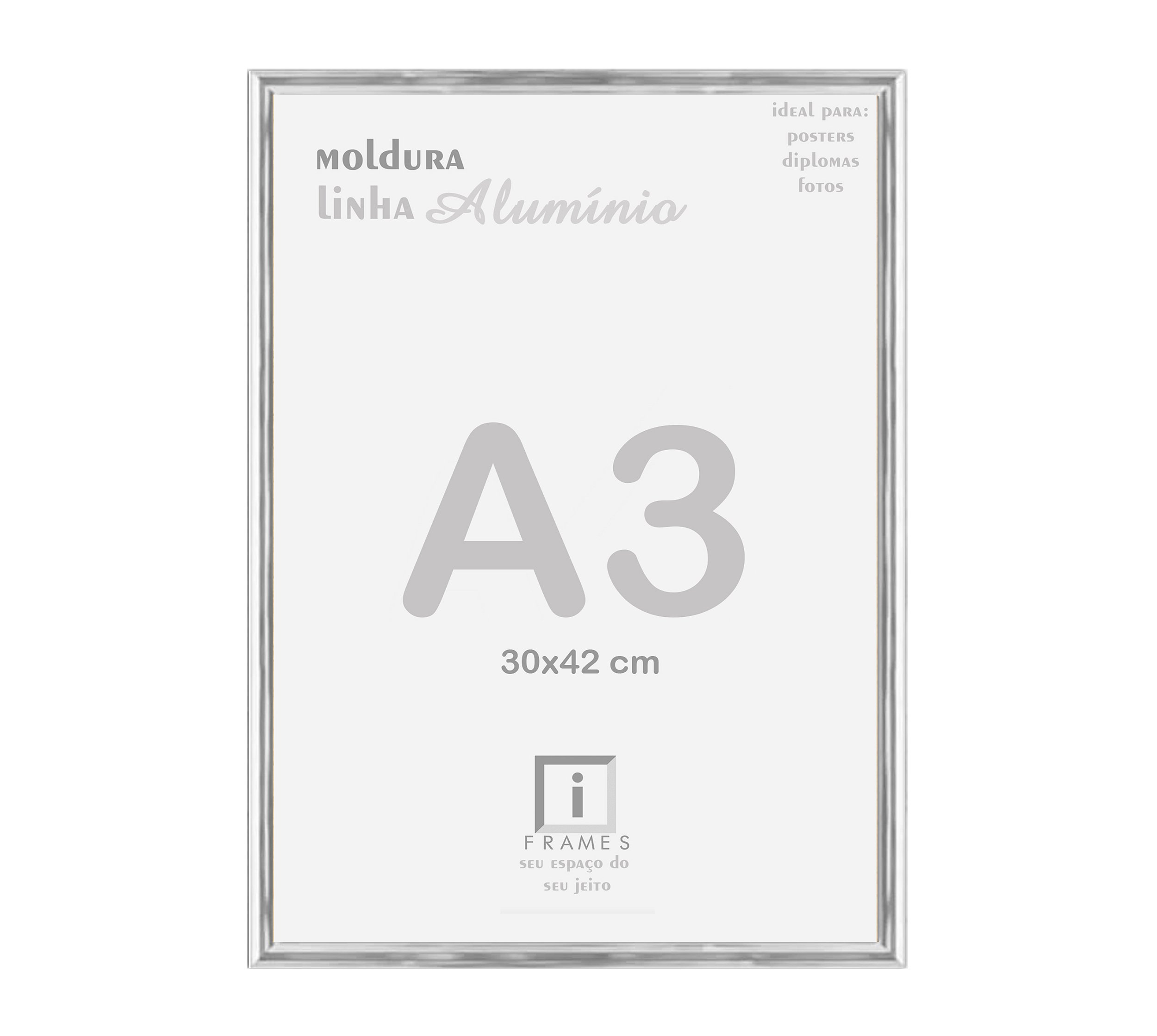Valorize suas conquistas e documentos importantes com a moldura prata A3 em alumínio. Projetada com elegância e durabilidade, ela é ideal para emoldurar certificados, diplomas e alvarás no tamanho 30x42 cm.