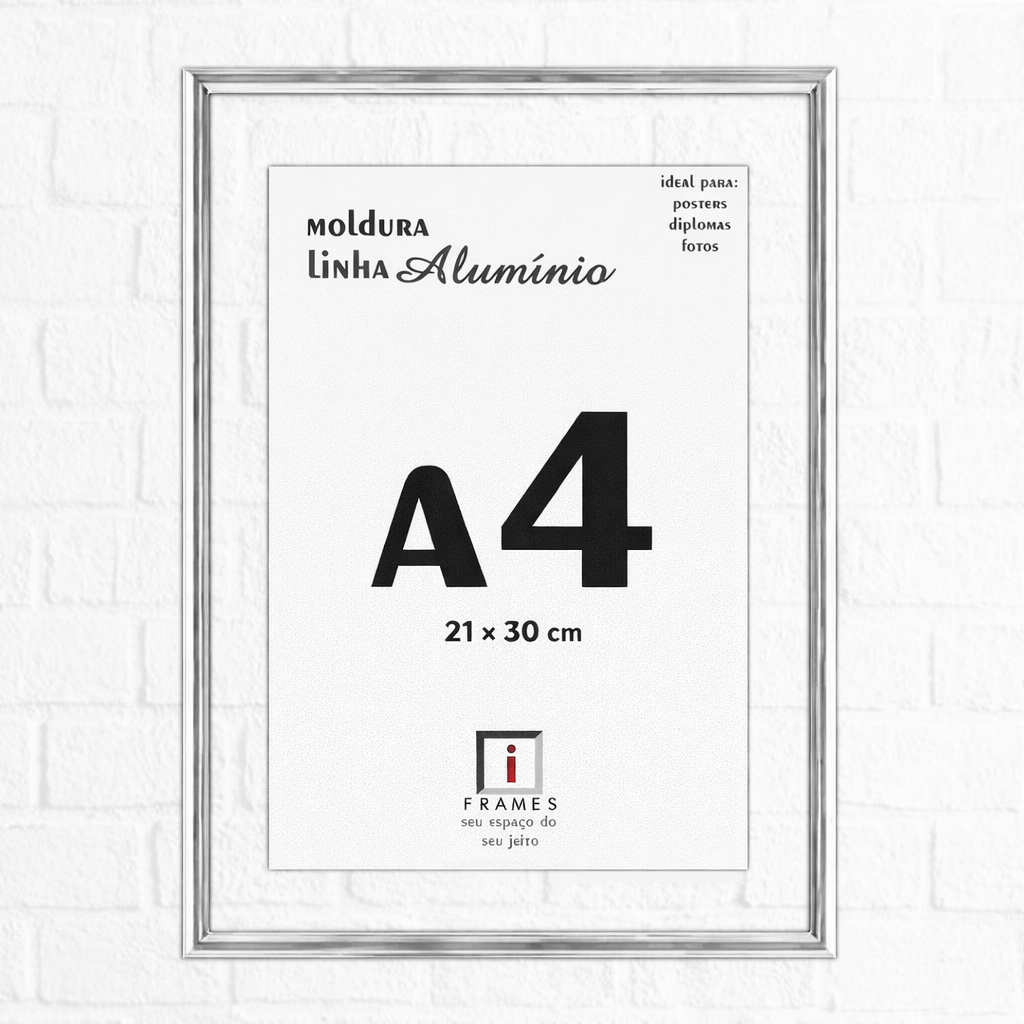 Material e Cor: Feita em alumínio de alta qualidade, a moldura possui um acabamento prata que oferece leveza e durabilidade, combinando perfeitamente com qualquer ambiente.