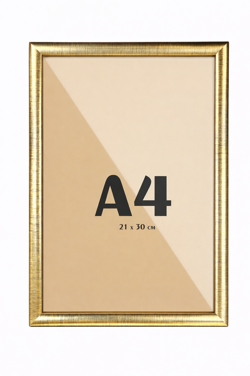 Moldura A4 - 21x30cm em ouro envelhecido da linha premium, com acabamento metálico refinado e visual atemporal para decoração sofisticada.