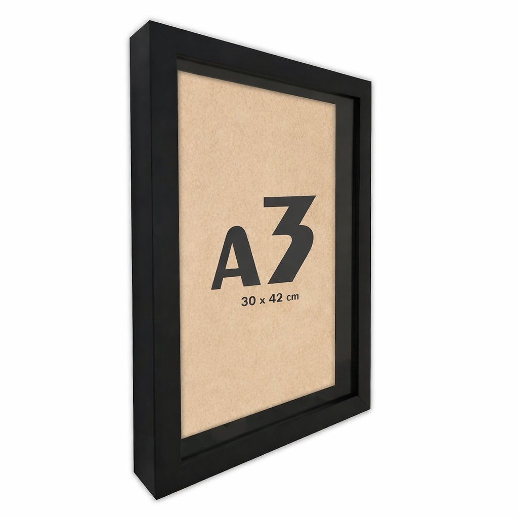 Moldura Quadro Caixa Alta Preta A3 30x42 cm com 3 cm de Profundidade