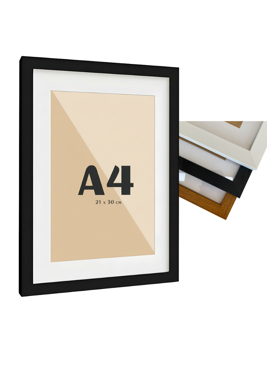 Apresentamos o lançamento da moldura A4 com vidro e paspatur de 3 cm, uma opção elegante e sofisticada para valorizar suas fotos, pôsteres e artes no formato A4 (21x30 cm).