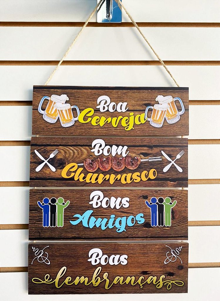 Design Único: As placas são unidas por um cordão de sisal, criando um visual rústico e autêntico que combina perfeitamente com o clima descontraído do churrasco.